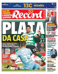 A primeira página do Record e o acesso ao ePaper do jornal.