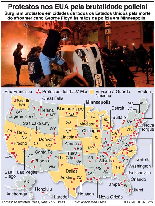 O mapa dos protestos nos EUA: cidades a ferro e fogo